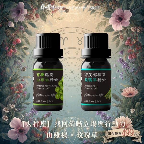 【舒香身體按摩油+義大利永久花純露】【天秤座】找回清晰立場與行動力|山雞椒 × 玫瑰草精油組