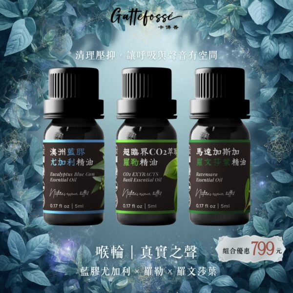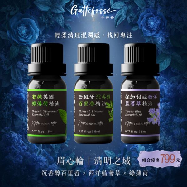 沉香醇百里香 × 西洋藍蓍草 × 綠薄荷 精油組喉輪・真實之聲