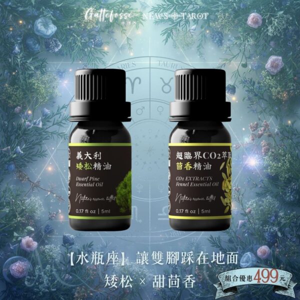 薰衣草x 甜馬鬱蘭 x 安息香 x 岩蘭草 x 岩玫瑰精油組【水瓶座】讓雙腳踩在地面|矮松 × 甜茴香精油組