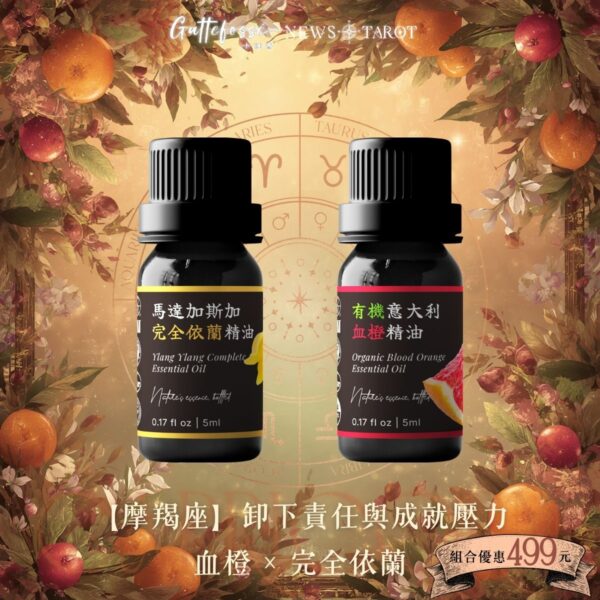完全依蘭 x 高地真正薰衣草 x 摩洛哥玫瑰 x 印度茉莉 x 橙花精油組【摩羯座】卸下責任與成就壓力|血橙 × 完全依蘭精油組